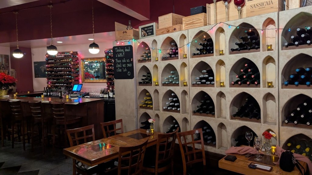 Yes, the place is tiny and both floors joined by a creaky, narrow stairway make you feel crammed in  like a …sardine? The wine selections are eclectic and only a few are recognizable brands like Mayacamas Vineyards and Arnot-Roberts. But the opportunity here is to select a wine by the glass and try something new. Prices start at $9 a glass, and the pour is generous. A Negrette from Fronton was one of the best, but the Montepulciano d’ Abruzzo was the real deal for $9 and merited a second glass.
