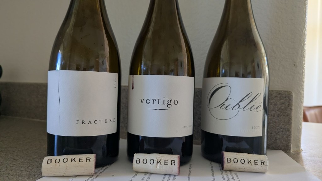 Since I don’t do lists, the wine is the 2022 Vertigo made by Booker Vineyard in Paso Robles. A 2022 Rhone blend that favored Syrah and Mourvedre with Grenache as a supporting actor, “Vertigo” owes its name to the steep slopes where the components are grown in the estate vineyards.